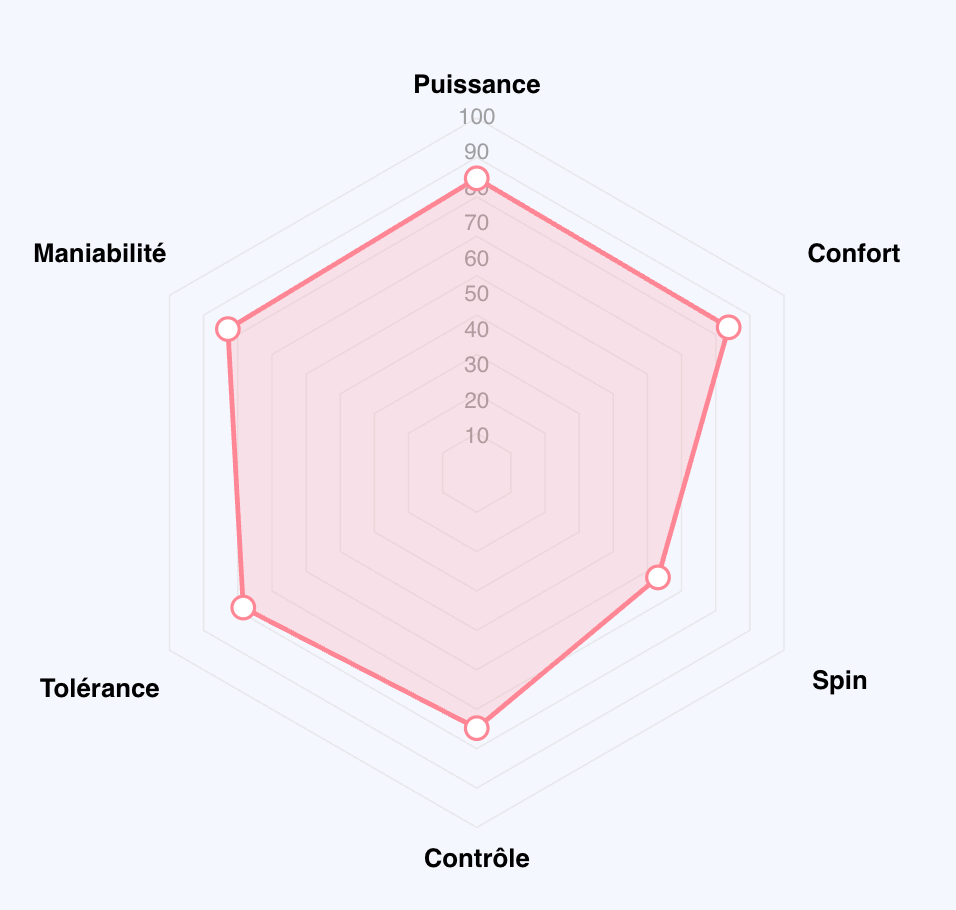 Ayant en son sein une mousse de haute densité, préparez-vous à ajouter de la vitesse aux balles à chaque frappe ! Cela est dû à la rigidité de la gomme Power Foam qui fournit un bon retour de force sans trop se fatiguer.